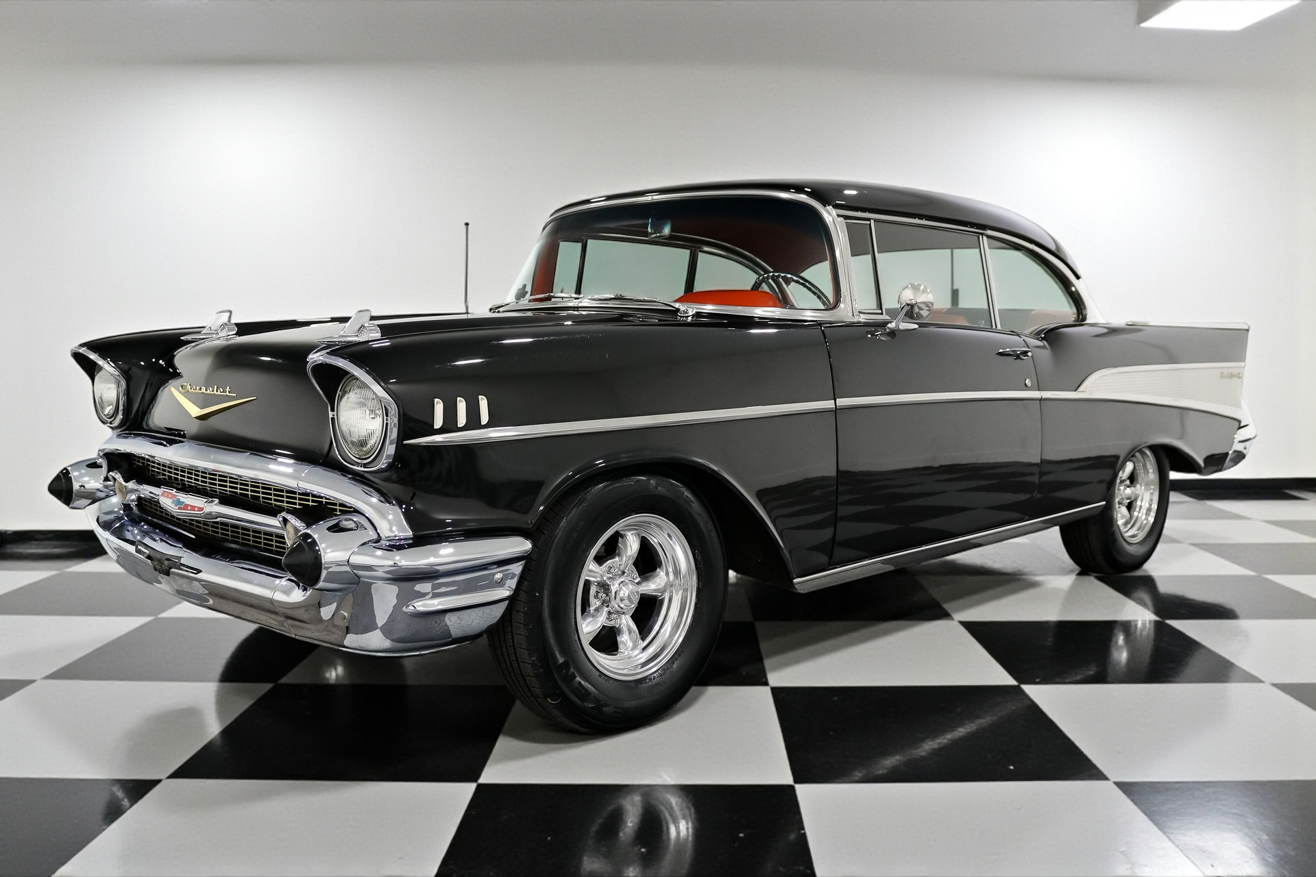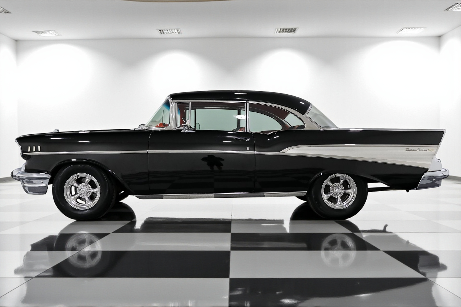 Cloaked in a sleek Black exterior and featuring a vibrant Red interior, this Bel Air is the epitome of 1950s elegance. Under the hood, a robust 283ci V8 engine is paired with a 700R4 automatic overdrive transmission, ensuring smooth and powerful cruising.