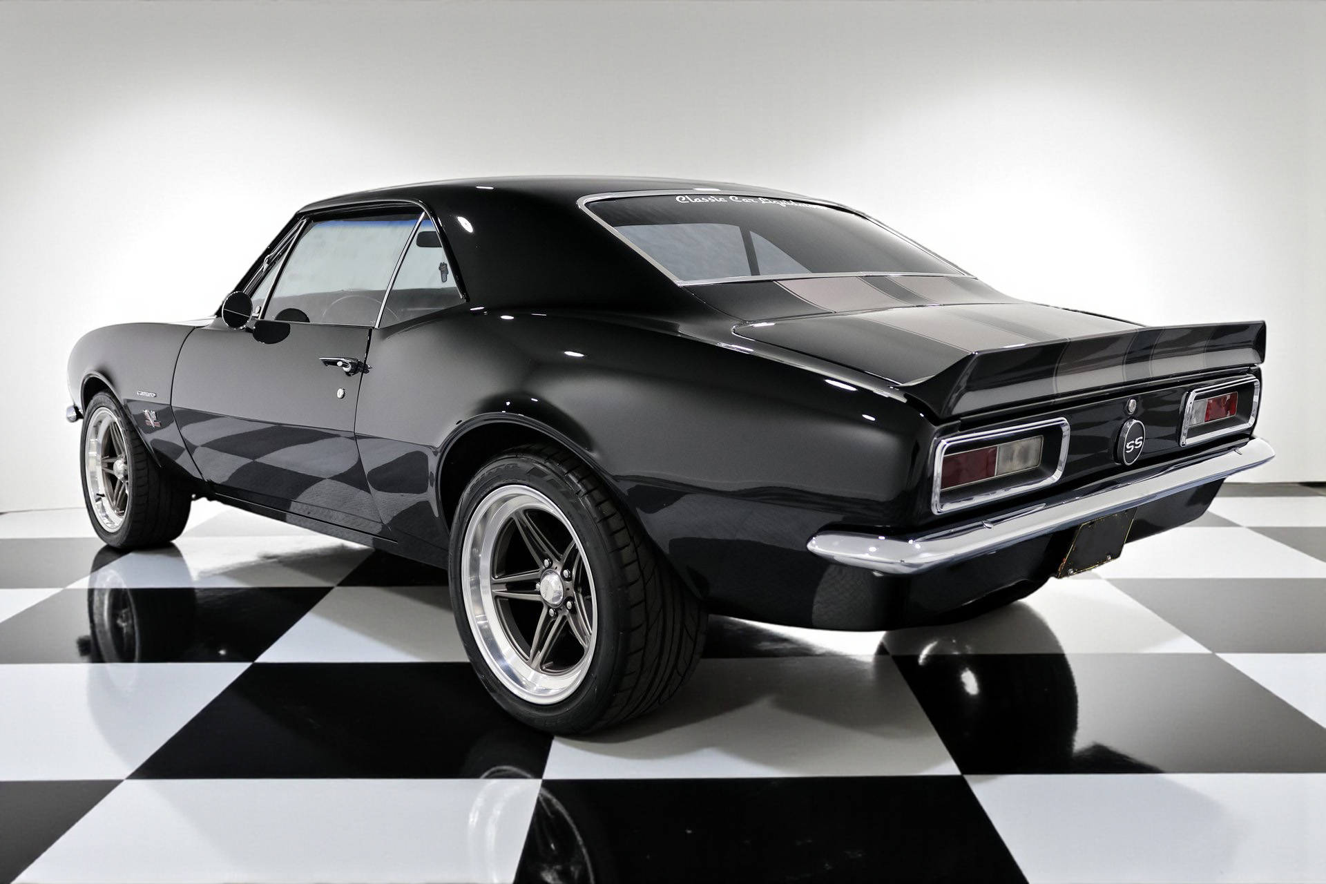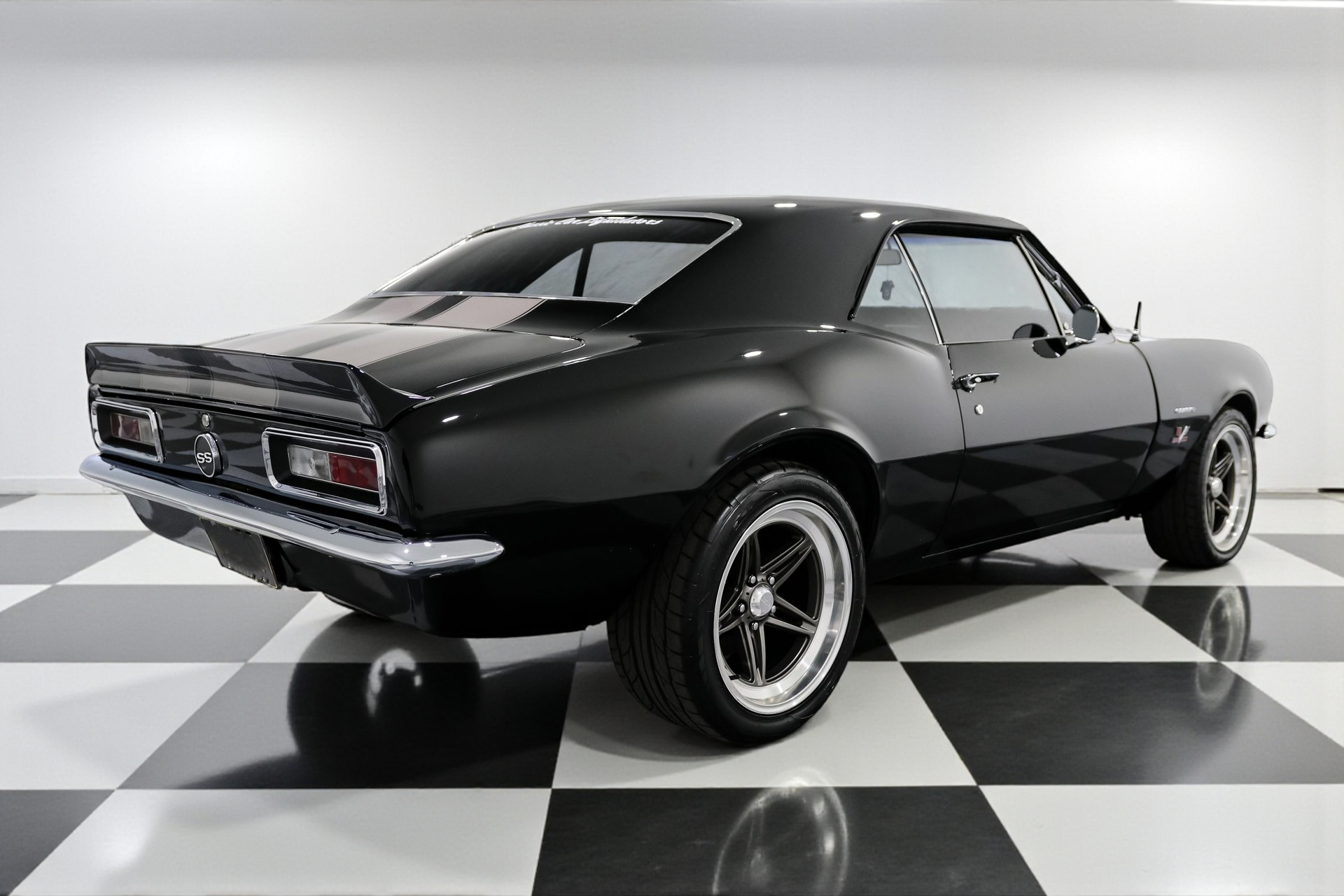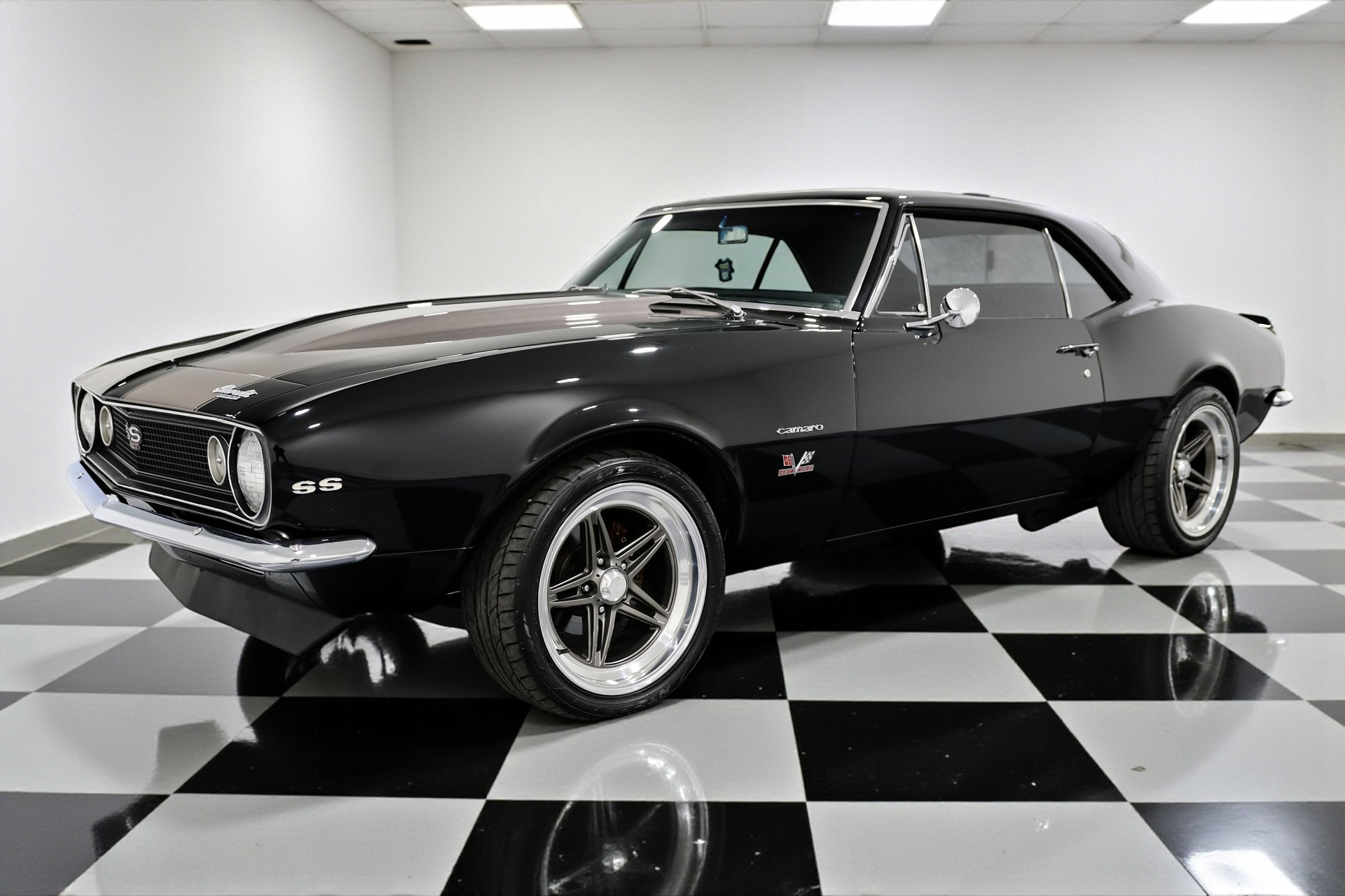 The 1967 Chevrolet Camaro is a blacked-out street machine with power, style, and a commanding presence that epitomizes muscle car perfection. Dressed in glossy black paint and sitting on bold American Racing wheels, this first-gen Camaro is built to dominate both the boulevard and the track. It's a timeless blend of classic design and modern performance upgrades.