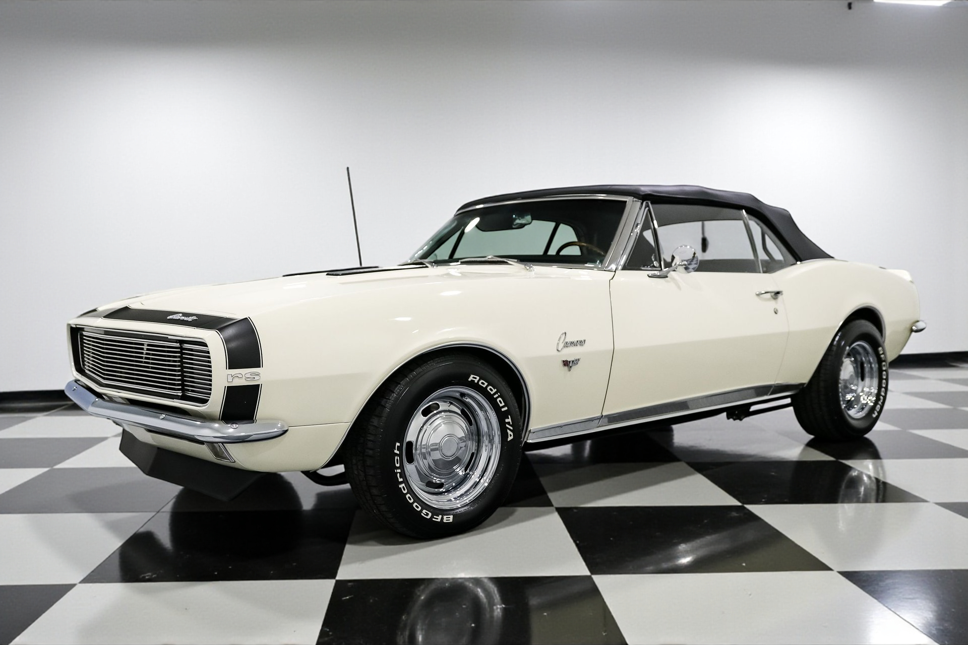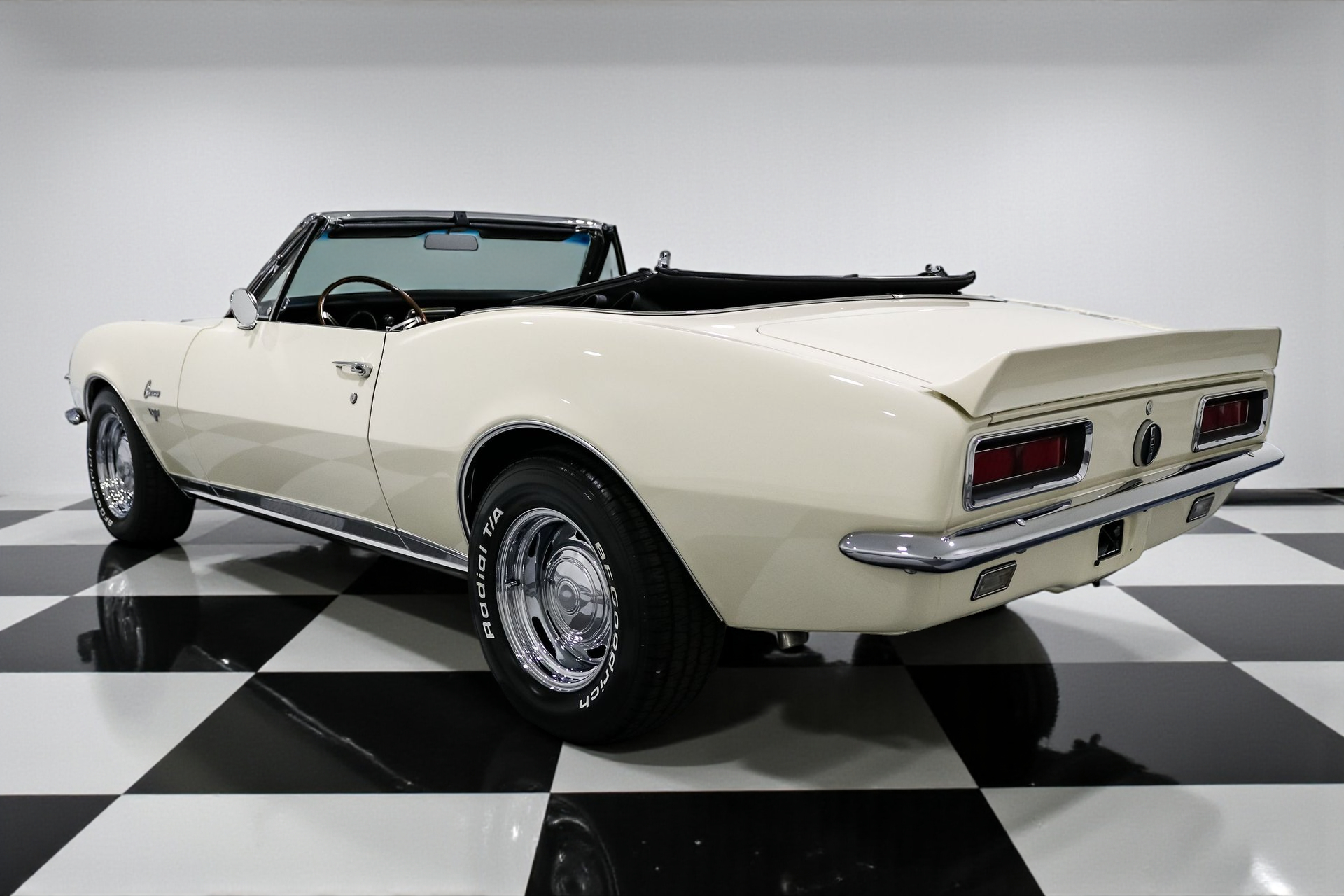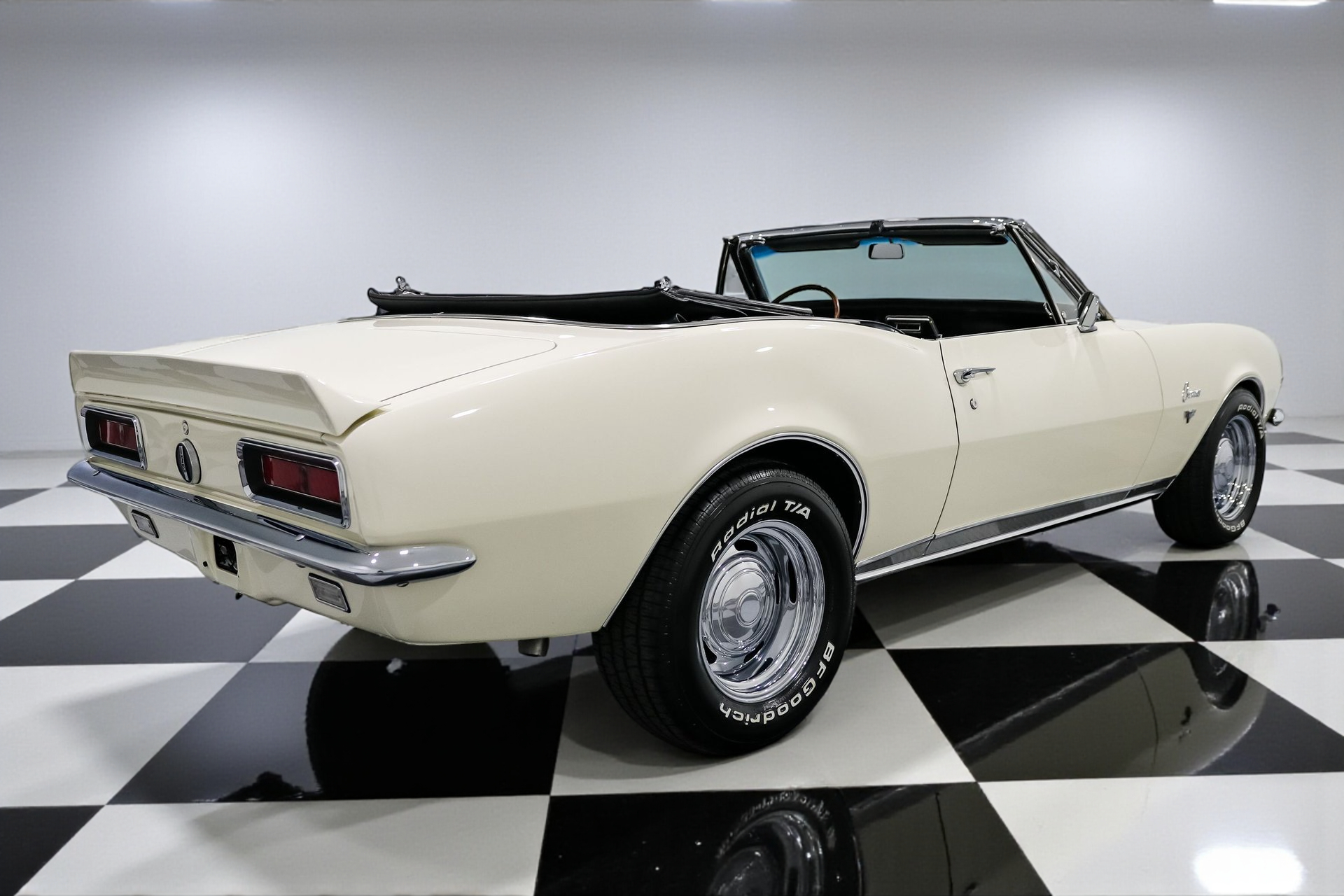 Every detail on this Camaro has been thoughtfully upgraded, from the finned aluminum valve covers and air cleaner to the late-model serpentine belt setup. The 15-inch Chevrolet rally wheels give it an iconic stance, while front and rear spoilers complete the aggressive look. Restored glass, a new convertible top, and flawless chrome accents make it shine like it just rolled off the showroom floor.