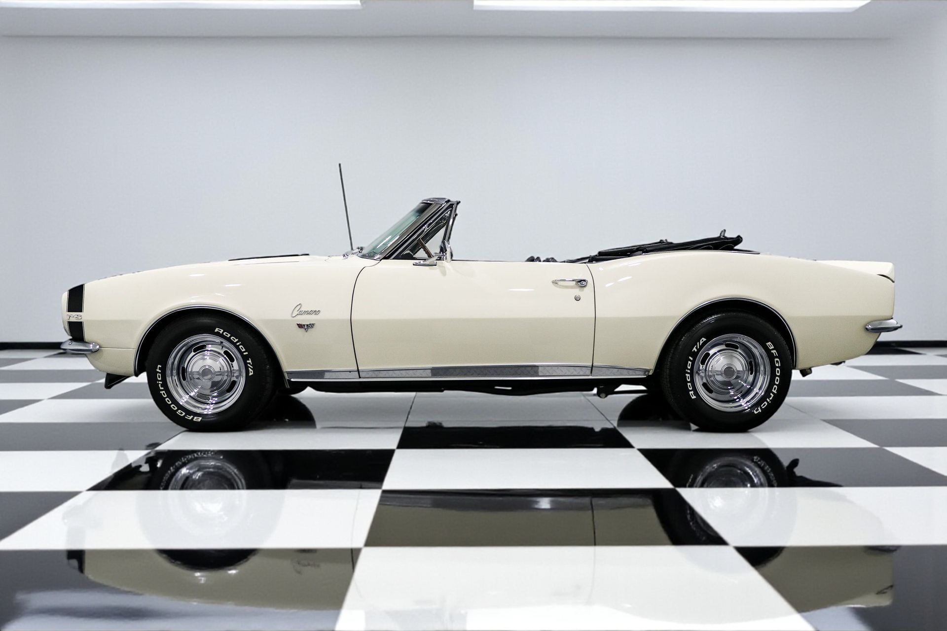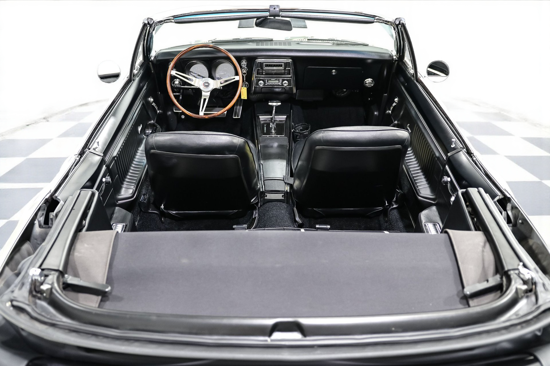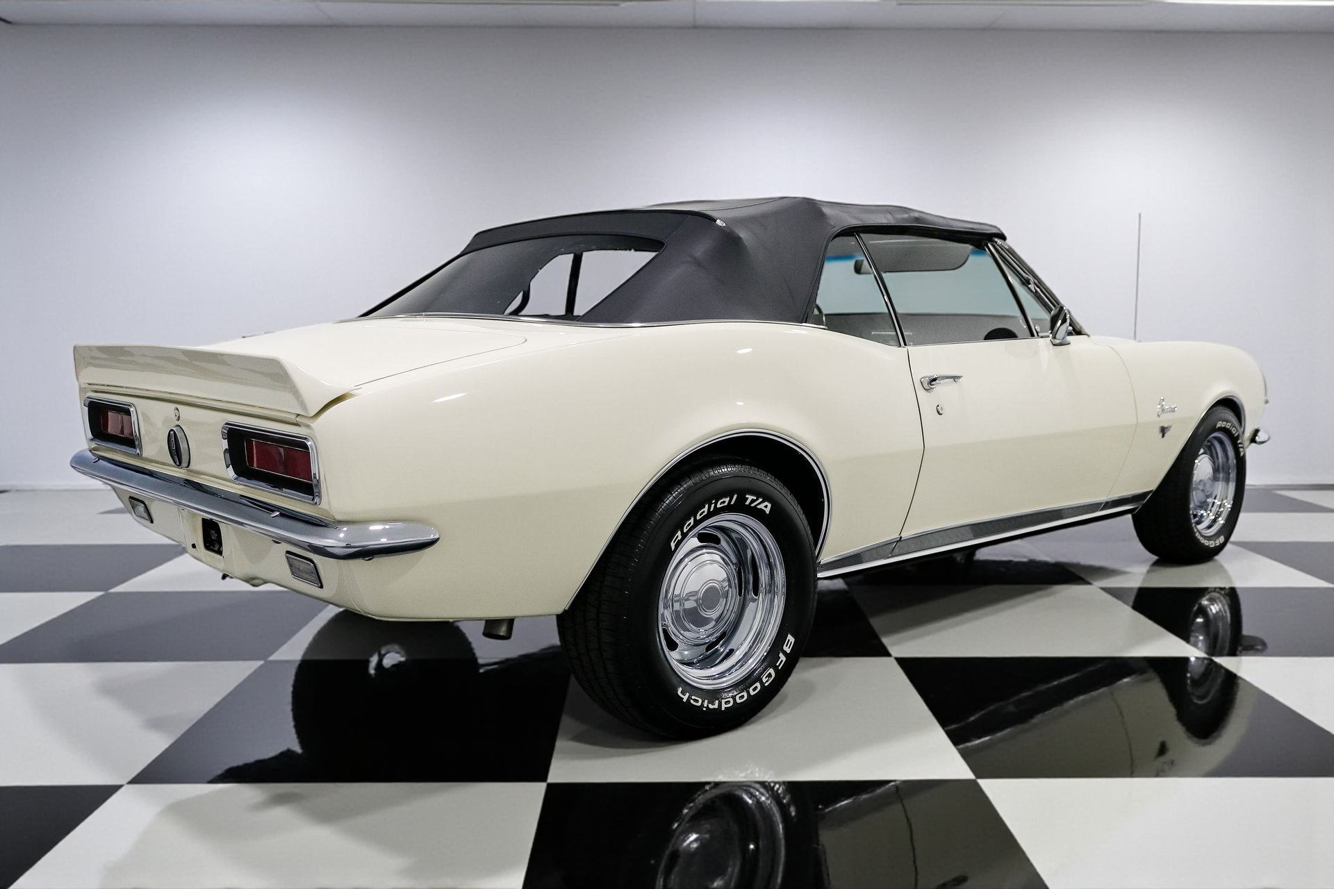Every detail on this Camaro has been thoughtfully upgraded, from the finned aluminum valve covers and air cleaner to the late-model serpentine belt setup. The 15-inch Chevrolet rally wheels give it an iconic stance, while front and rear spoilers complete the aggressive look. Restored glass, a new convertible top, and flawless chrome accents make it shine like it just rolled off the showroom floor.