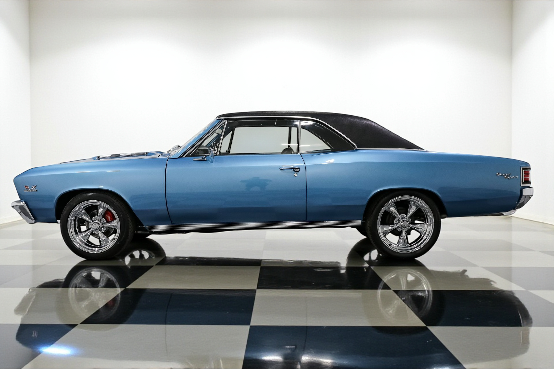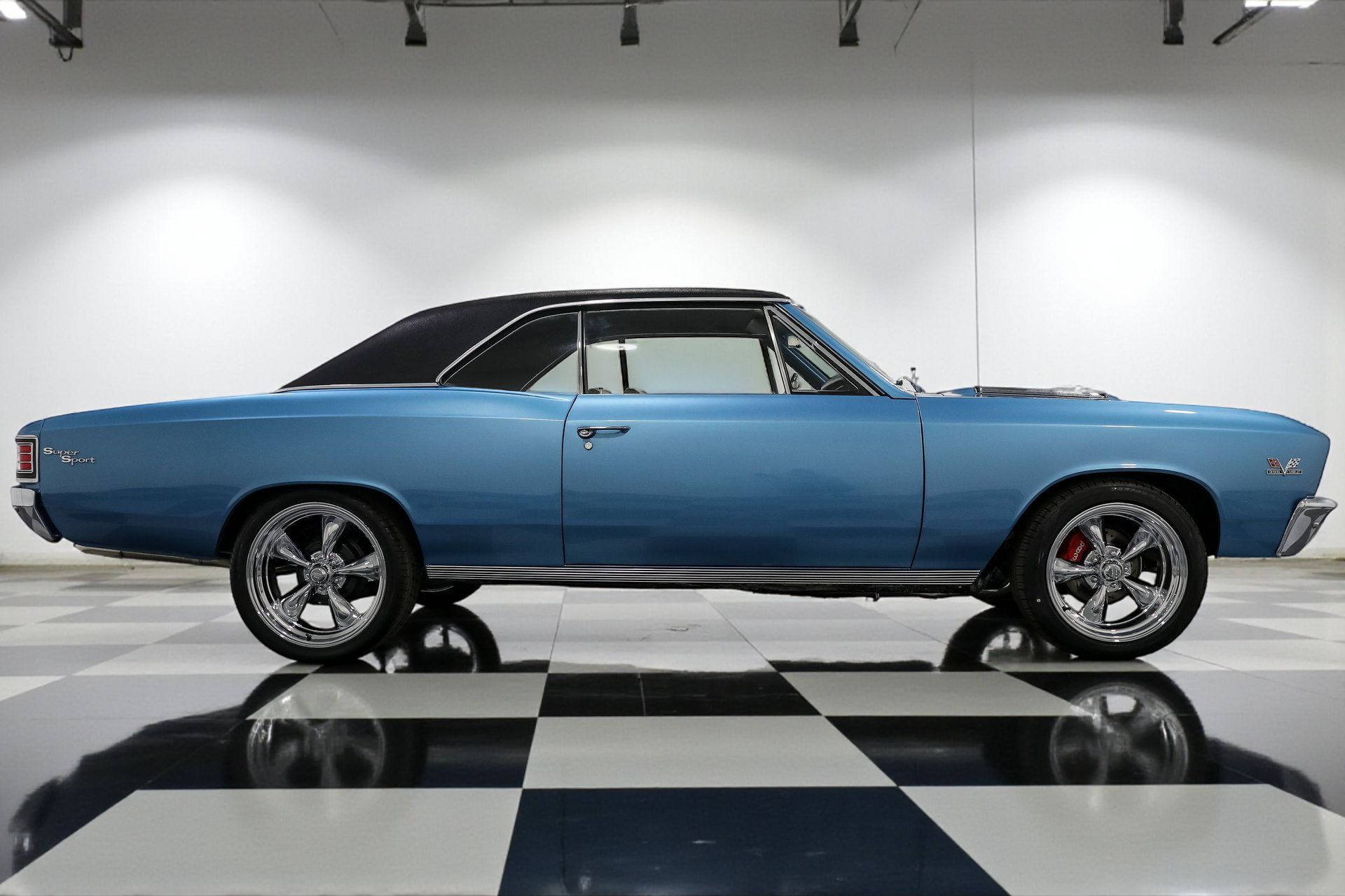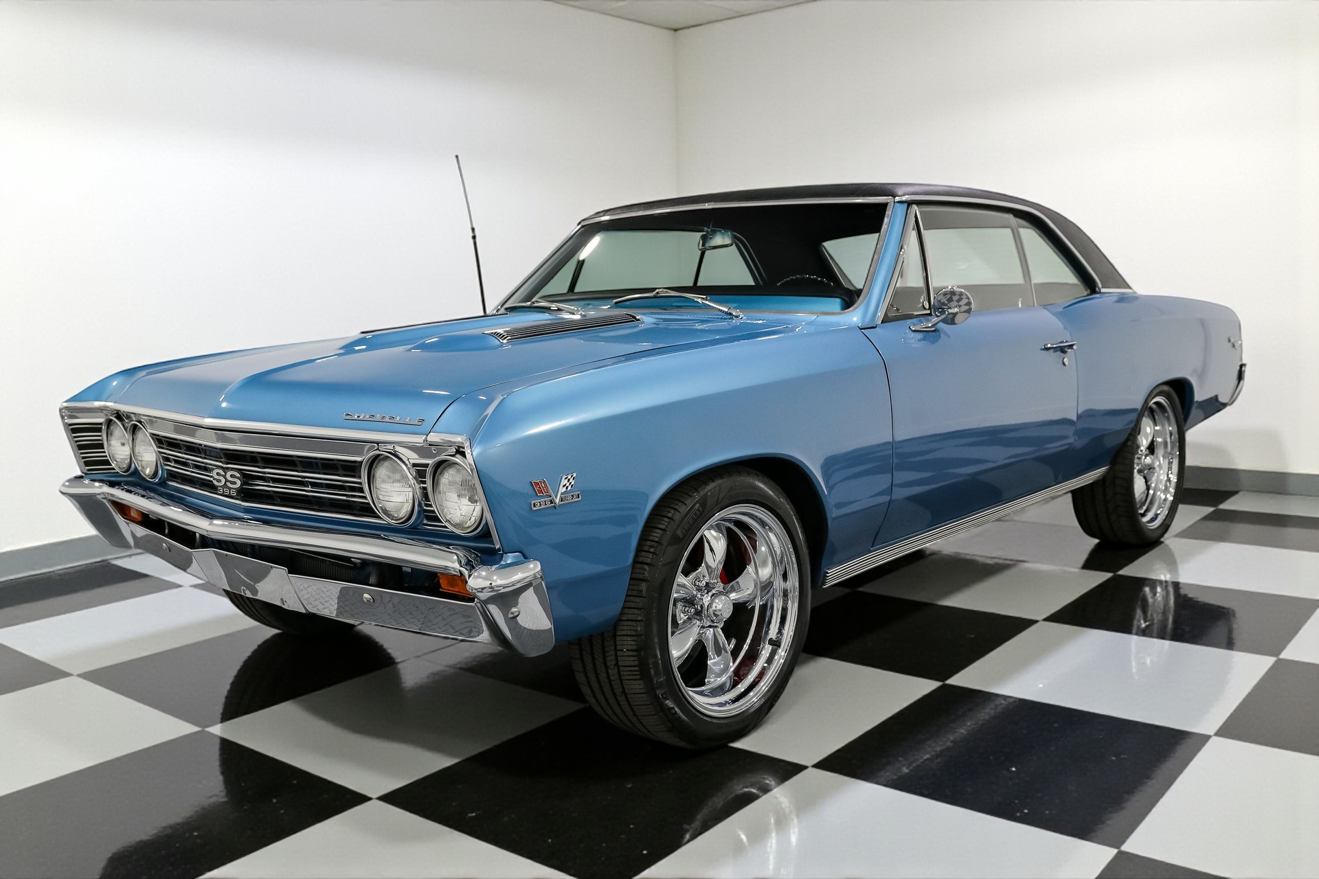 The 1967 Chevrolet Chevelle stands as a titan, embodying the brute force and elegance of the era's automotive design. This particular Chevelle, swathed in an eye-catching blue and boasting a black interior, represents a remarkable blend of classic American muscle and modern refinement. Under the hood lies a numbers matching 396 CI big block V8, a heart that beats with the raw power of yesteryear, paired perfectly with a 4-speed manual transmission that demands engagement and skill, making every drive an exhilarating experience.