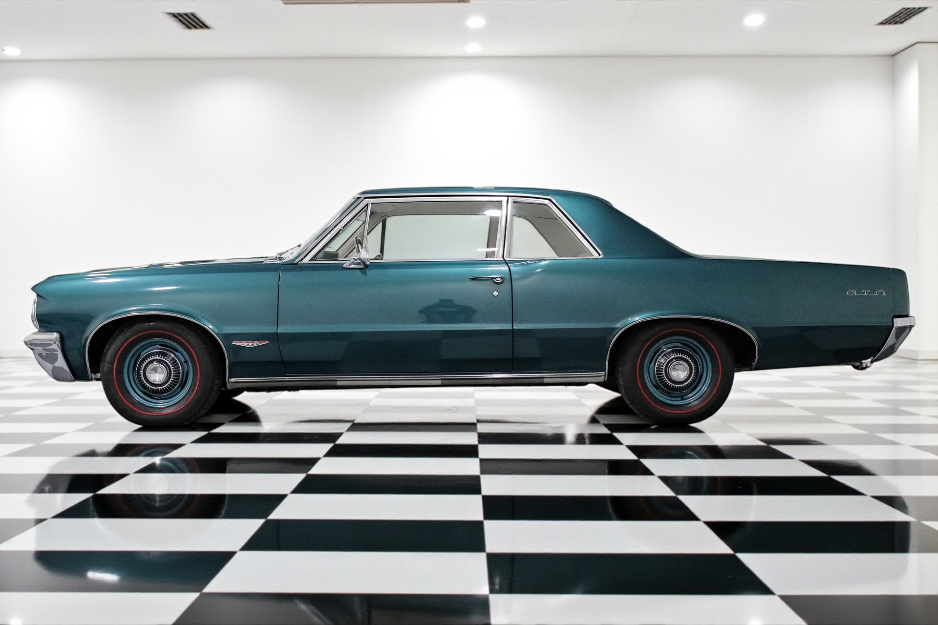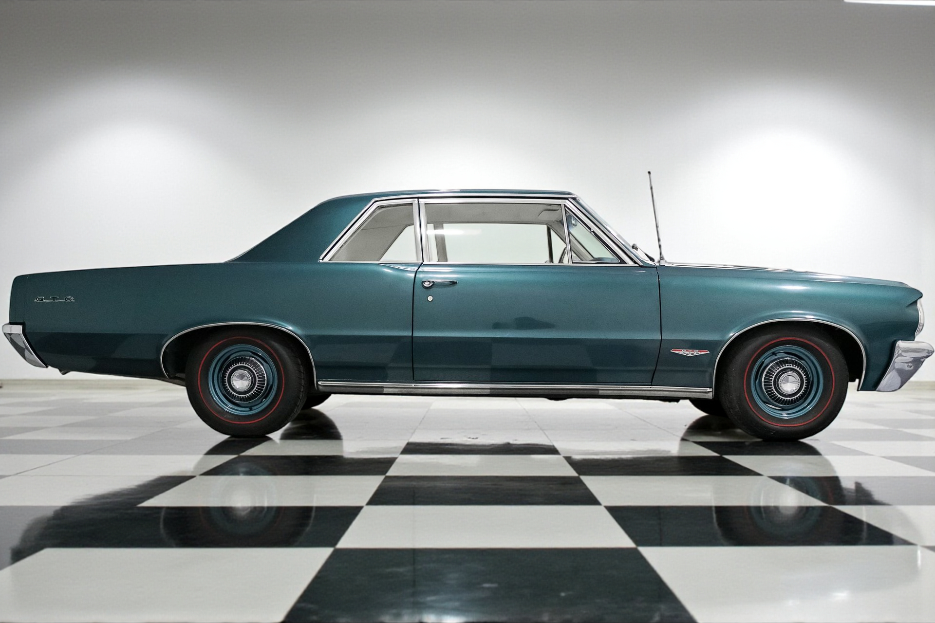 Eye-Catching Design: The Aqua body color perfectly complements the GTO's classic lines, turning heads wherever you go. The GTO Twin Scoop Hood not only adds to its aggressive appearance but also hints at the power lurking beneath. Factory powder-coated wheels with dog dish hub caps complete the authentic look, while red line radial tires provide a touch of nostalgia.