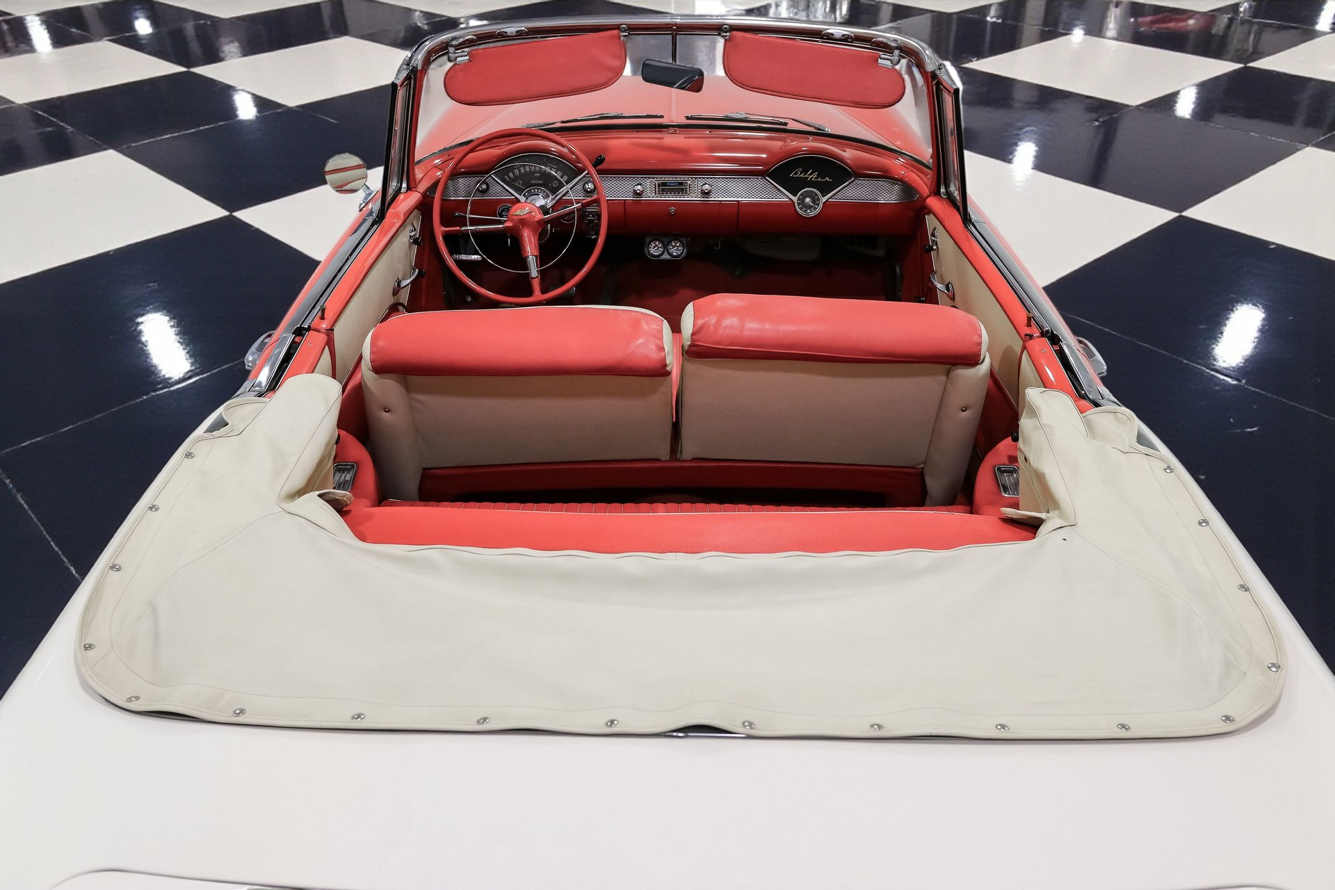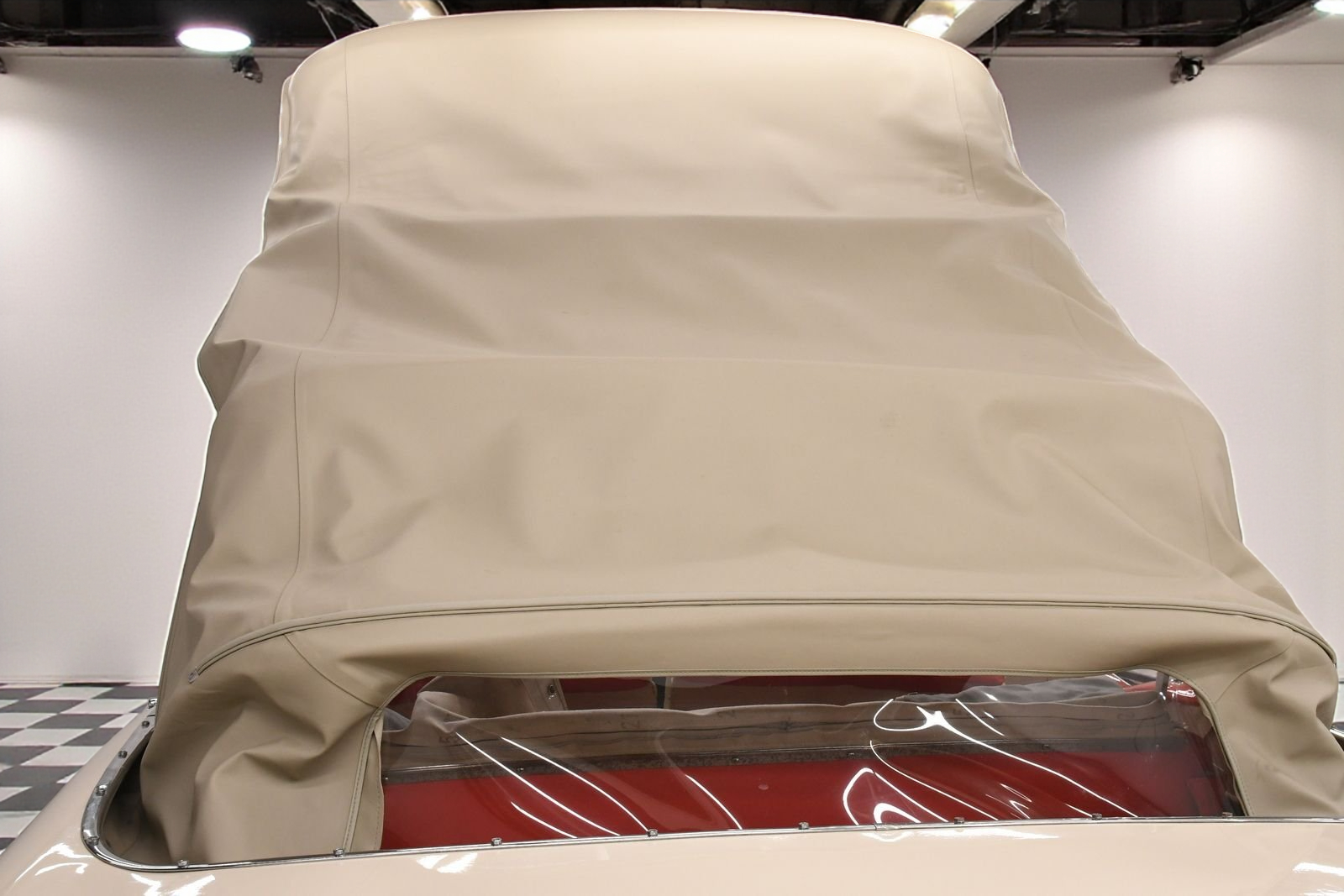This convertible is not just about its breathtaking looks; it's equipped with features that enhance its driving experience and functionality. The power convertible top allows for effortless transitions from a cozy cruiser to an open-air joyride, inviting the sunshine and breezes to complement every journey. Wide white tires and factory hub caps underscore its vintage charm, while manual brakes ensure an authentic driving feel.