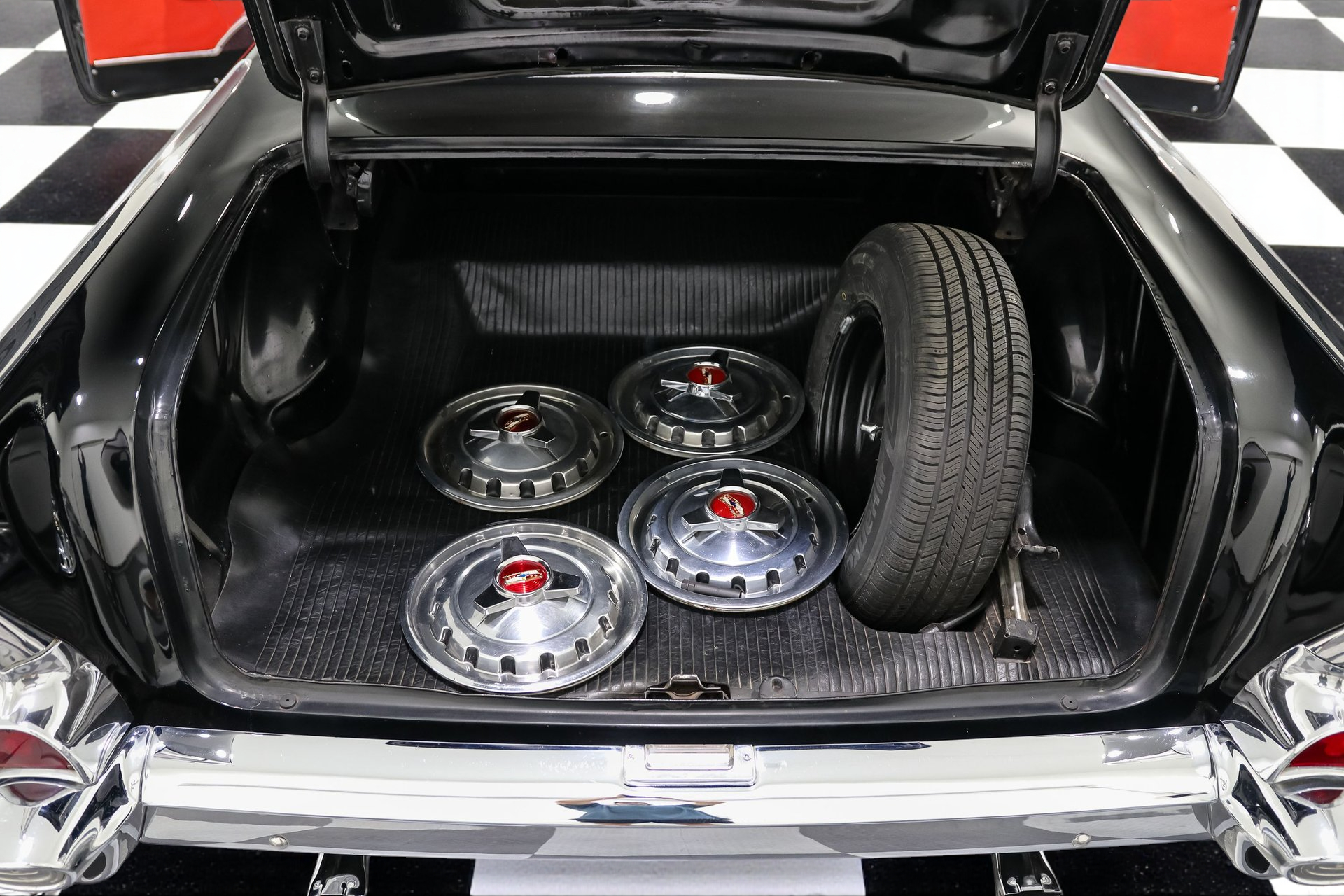 The exterior features 15-inch American Racing Torque Thrust wheels that enhance its classic muscle car look. The power rack and pinion steering make handling a breeze, while the air conditioning ensures comfort on warm days. The Chevrolet Performance chrome air cleaner and seat belts are thoughtful additions that blend seamlessly with the car's original style.