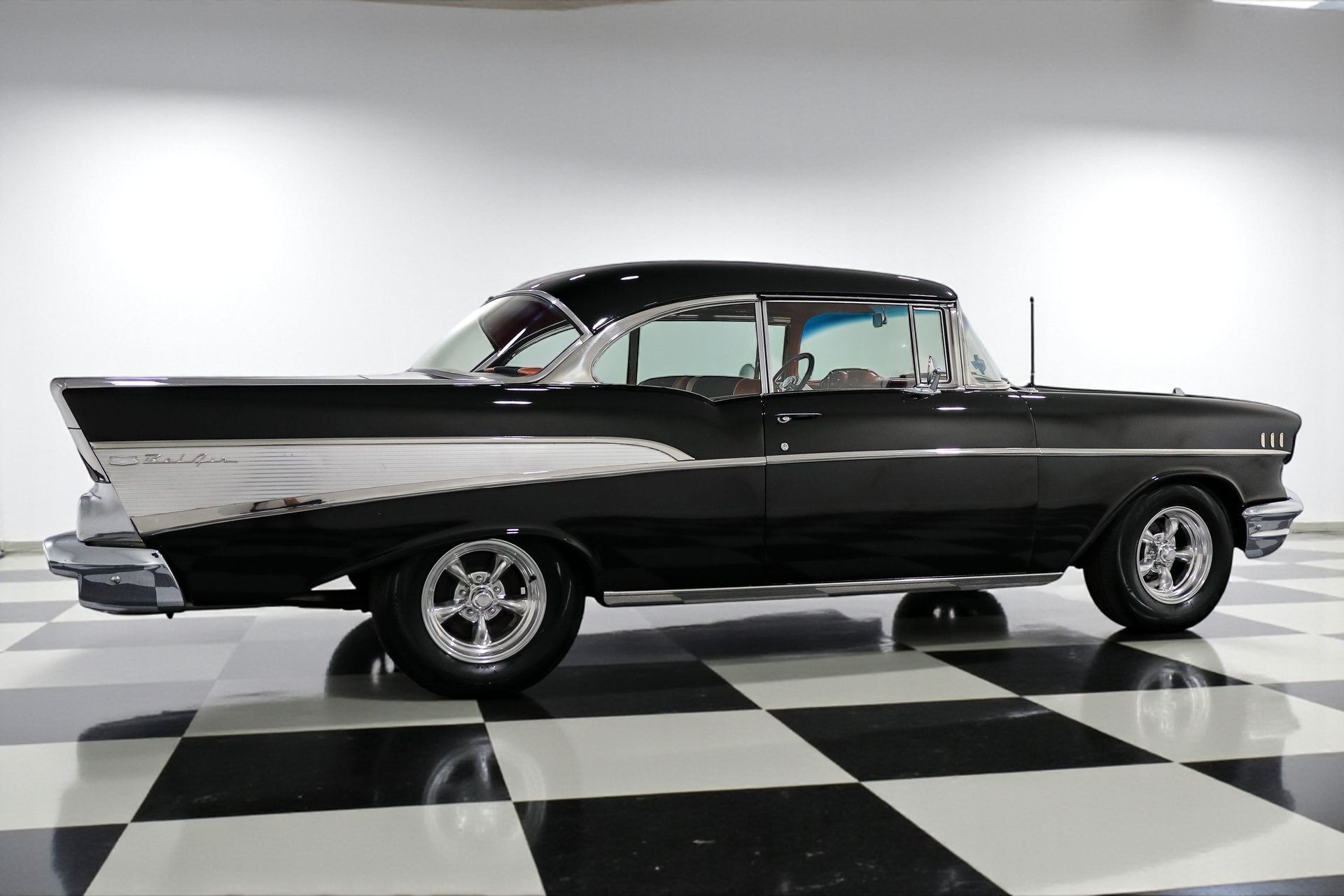 The 1957 Bel Air is celebrated for its distinctive design and performance. This example takes it up a notch with a host of modern enhancements. The Edelbrock carburetor and aluminum intake boost engine performance, while the Griffin aluminum radiator keeps things cool even on the hottest days. Power brakes with front discs and dual exhaust provide both safety and that classic V8 sound, ensuring every drive is both thrilling and secure.