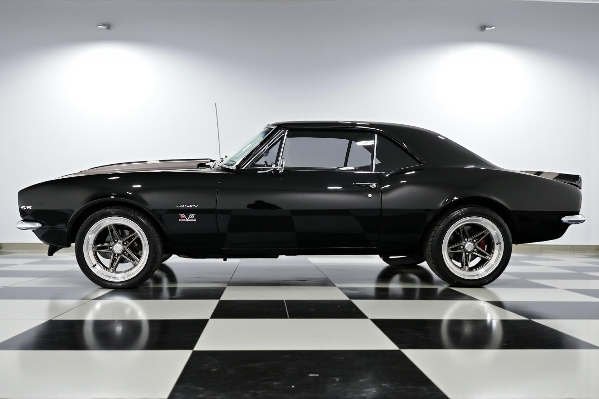 The 1967 Chevrolet Camaro is a blacked-out street machine with power, style, and a commanding presence that epitomizes muscle car perfection. Dressed in glossy black paint and sitting on bold American Racing wheels, this first-gen Camaro is built to dominate both the boulevard and the track. It's a timeless blend of classic design and modern performance upgrades.
