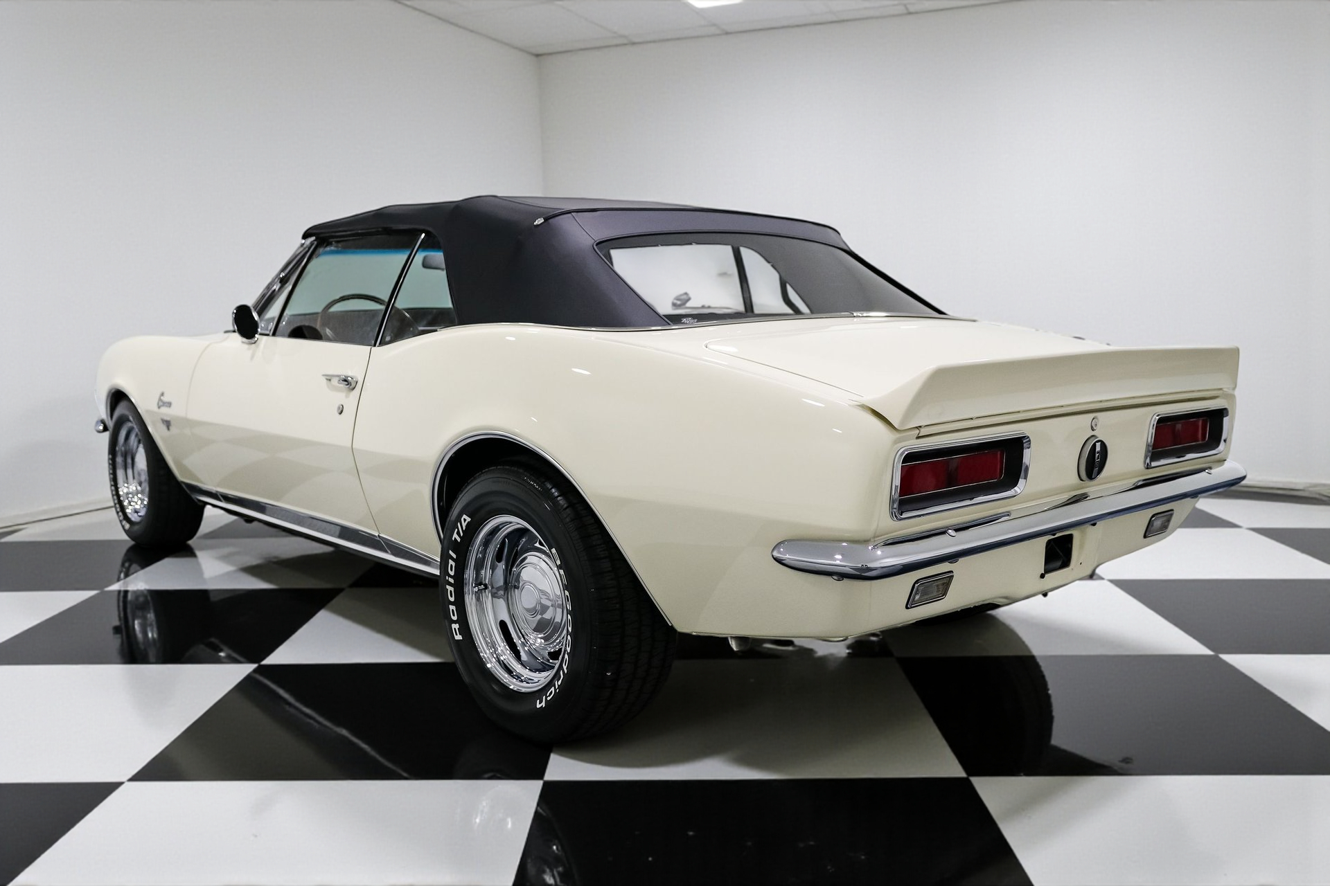 Every detail on this Camaro has been thoughtfully upgraded, from the finned aluminum valve covers and air cleaner to the late-model serpentine belt setup. The 15-inch Chevrolet rally wheels give it an iconic stance, while front and rear spoilers complete the aggressive look. Restored glass, a new convertible top, and flawless chrome accents make it shine like it just rolled off the showroom floor.