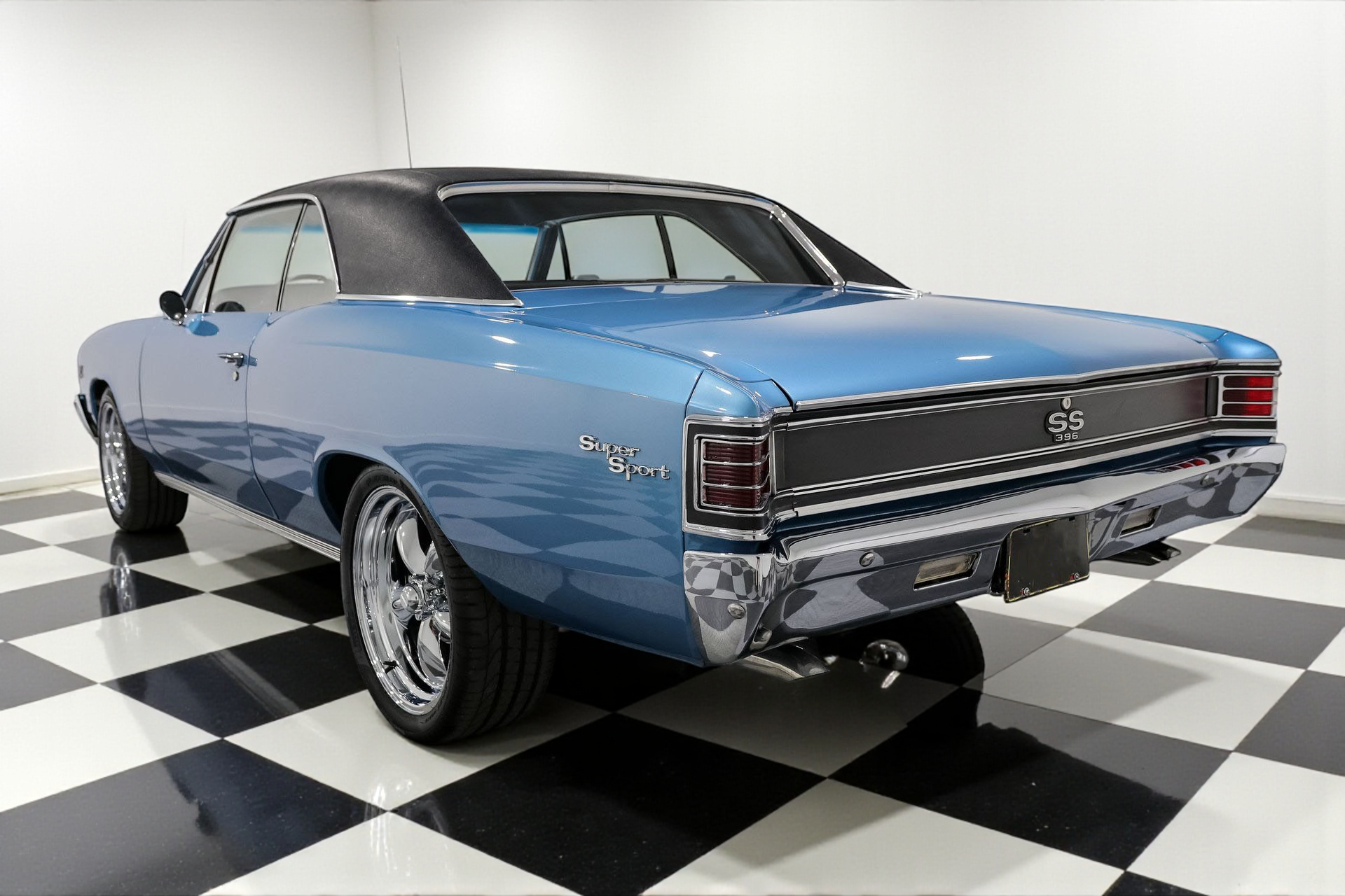 The 1967 Chevrolet Chevelle stands as a titan, embodying the brute force and elegance of the era's automotive design. This particular Chevelle, swathed in an eye-catching blue and boasting a black interior, represents a remarkable blend of classic American muscle and modern refinement. Under the hood lies a numbers matching 396 CI big block V8, a heart that beats with the raw power of yesteryear, paired perfectly with a 4-speed manual transmission that demands engagement and skill, making every drive an exhilarating experience.