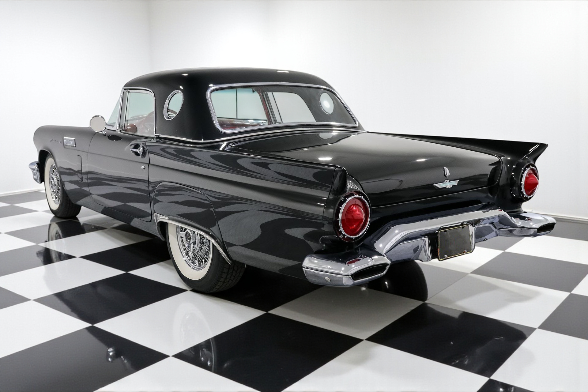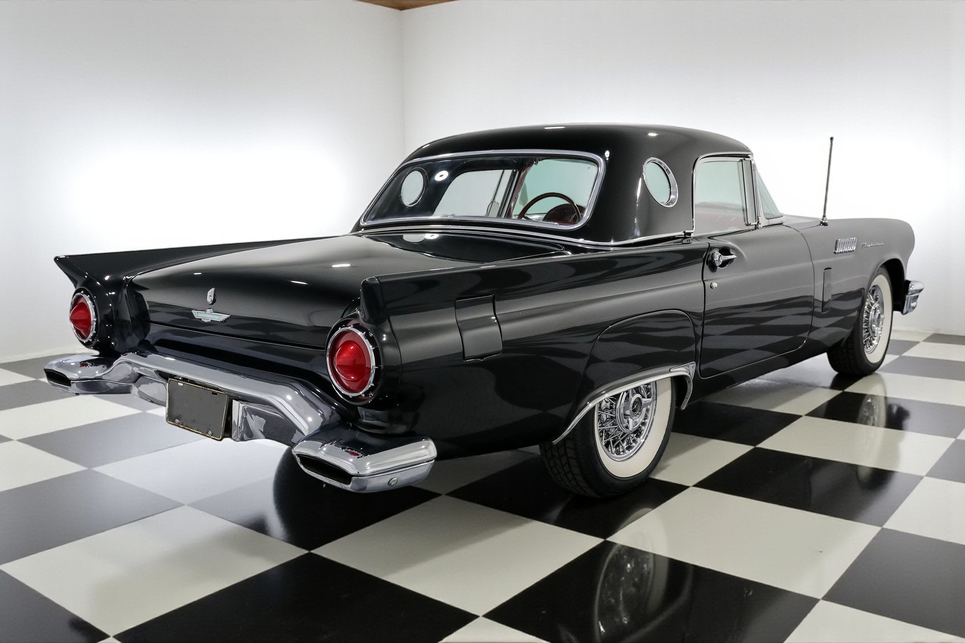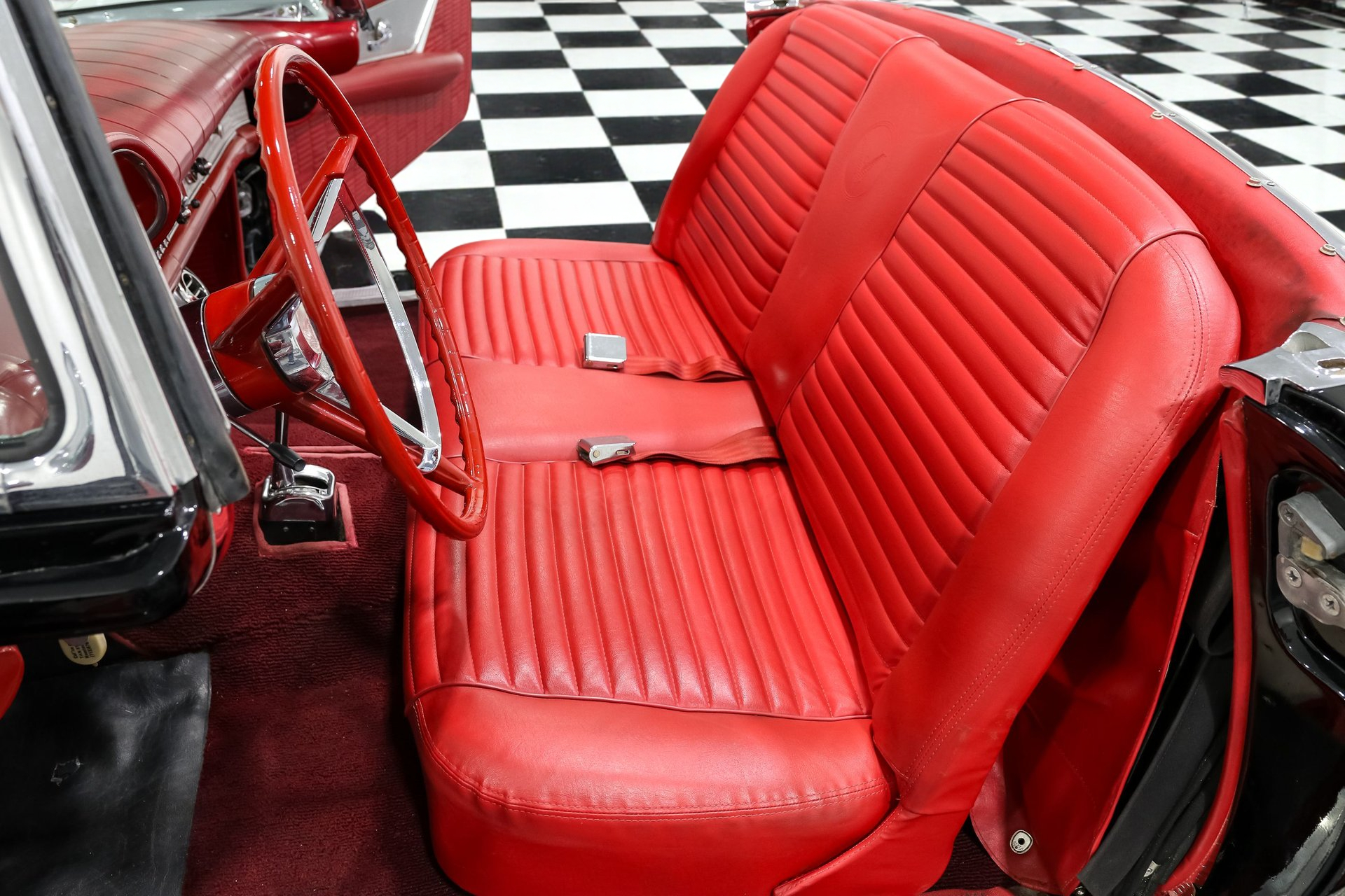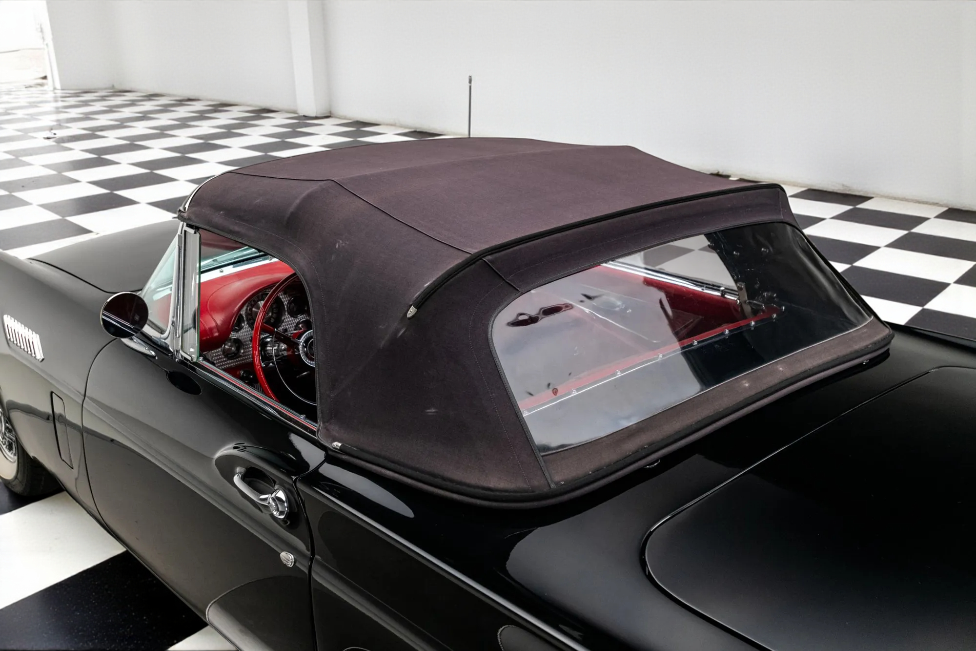 Dressed to impress in sleek black paired with a vibrant red interior, this Thunderbird captures the spirit of its era perfectly, blending iconic design with the thrill of open-air driving.