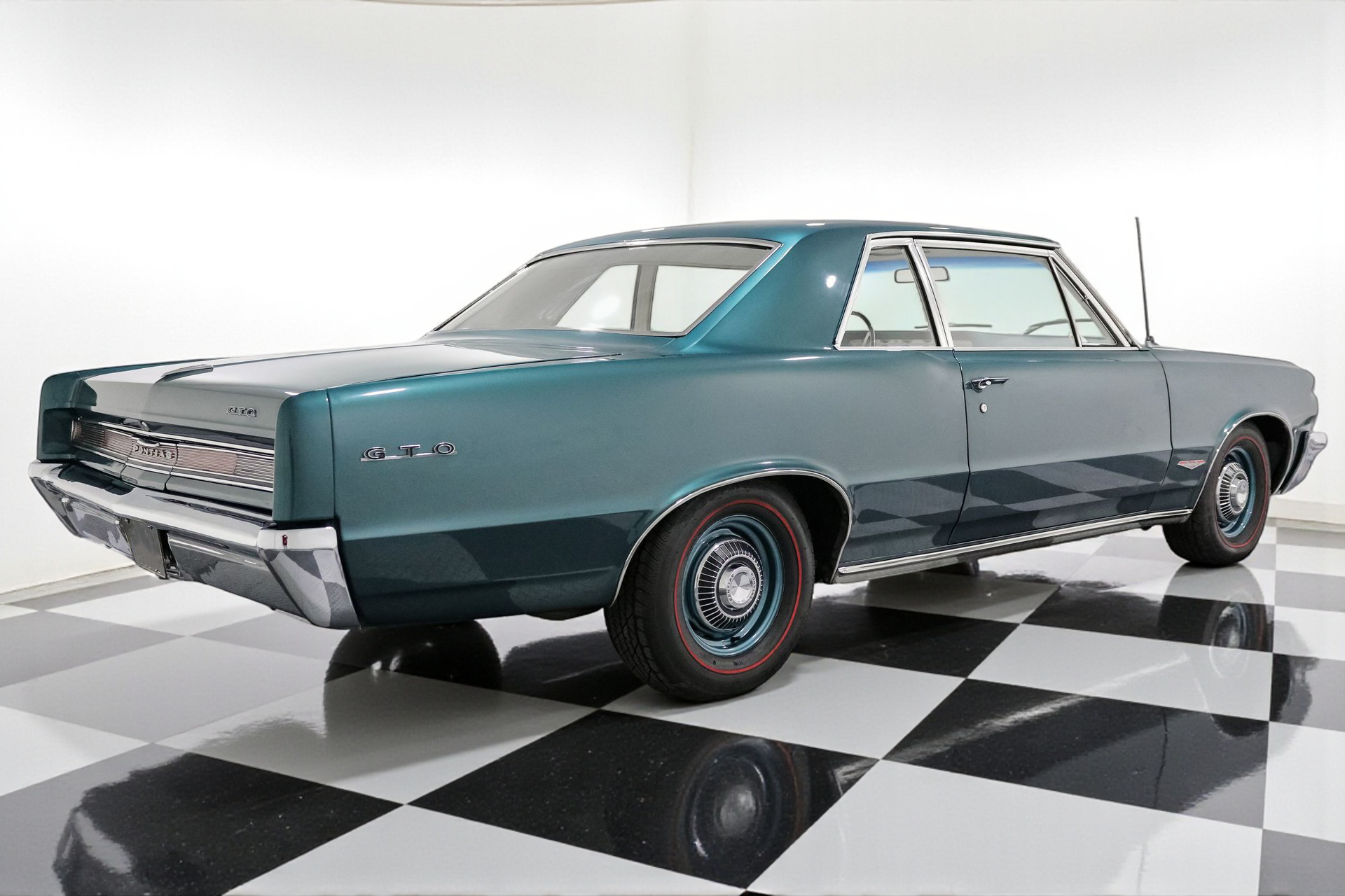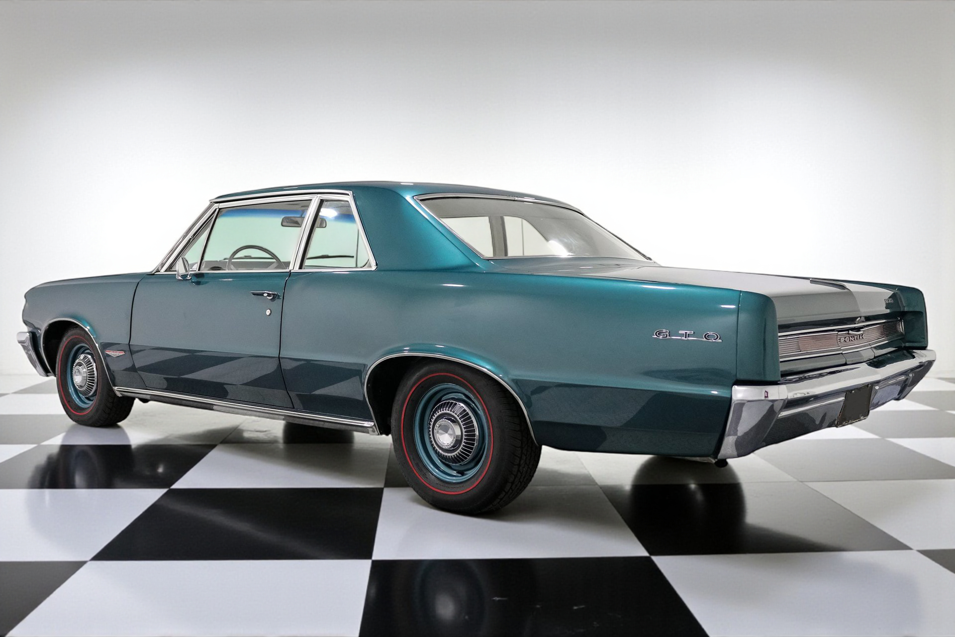 Eye-Catching Design: The Aqua body color perfectly complements the GTO's classic lines, turning heads wherever you go. The GTO Twin Scoop Hood not only adds to its aggressive appearance but also hints at the power lurking beneath. Factory powder-coated wheels with dog dish hub caps complete the authentic look, while red line radial tires provide a touch of nostalgia.